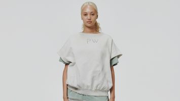 オリジナルで作成した上質な光沢感を持つプレーティング天竺を使用。オーバーサイズシルエット。